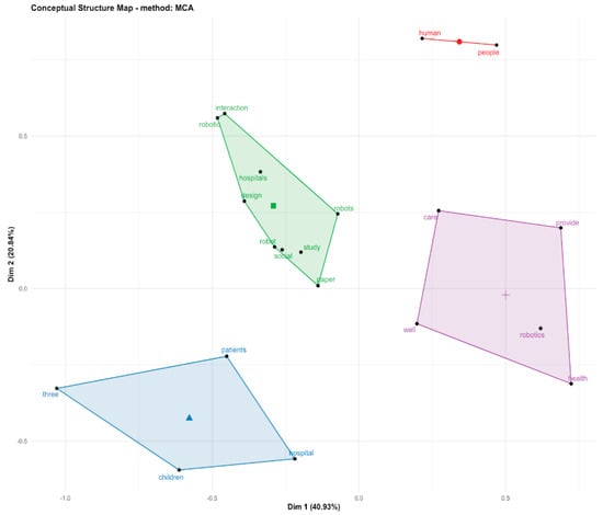 A bibliometric analysis performed using Bibliometrix (an R-tool) and VOSViewer [] was carried out on the 112 eligible documents after the first screening, that considered the importance of: 1. The annual occurrences vs. years, 2. Evolution in time of titles and abstract terms, 3. Details of the child cluster, 4. Details of clusters for older people, 5. Healthcare connections, and 6. Factorial analysis corresponding to Multiple Correspondence Analysis (MCA), which yielded four stable factors.