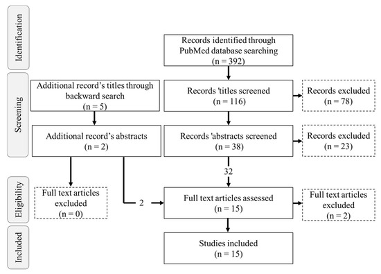 Full-text analysis was performed independently by two reviewers. Finally, fifteen articles were included.