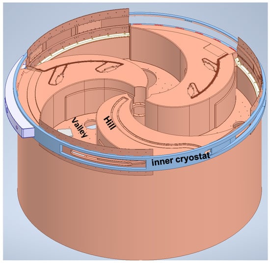 - Gallo, G.; Costa, G.; Allegra, L.; Calabretta, L.; Messina, G.; Musumeci, M.; Rifuggiato, D.; Zappalà, E. Mechanical modifications of the median plane for the Superconducting Cyclotron Upgrade. In Proceedings of the International Conference on Cyclotrons and their applications: CYC2019, Cape Town, Africa, 22–27 September 2019. [Google Scholar]