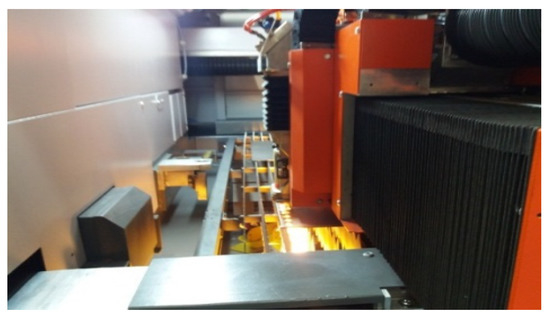 A complete factorial experiment was performed to determine the most suitable combinations that decrease the cutting width and improve the production cost. The ByAutonom 4020/6000 W laser cutting equipment, manufacturer: Bystronic Switzerland, was used to cut H400 sheets (Figure 2).
