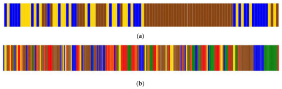 Whatever representation of the classifications may be, it is necessary to transform the classifications to a vector of numeric labels, in which a number represents a classification, to be able to calculate SC. To accomplish this, we assign the first numeric label (number 1) to the first item in the vector, which usually lays at one of the vector’s extremes. Then, if the classification of the next item is different from the previous one, the next number in the sequence is assigned, and so on. This way of labeling assures that the changes in the SC values are due to the order of numbers, that is to say, the grouping of the classifications resulting from the clustering, and it is not an artifact of the labeling itself (Figure 1).