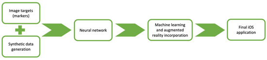 We aim to use machine learning techniques to enhance augmented reality experiences by developing a robust deep learning vision-based application. The proposed method can classify any images as AR markers without the need for users to modify the contents. This process also requires a minimal amount of time to commercialise the marker as quickly as possible. Figure 5 summarizes the proposed idea. We call the proposed system “Synthetic data annotation system for Augmented Reality Machine learning-based application” or SARM. To present our proposed system in more detail, we divide the practical implementation into three different modules: