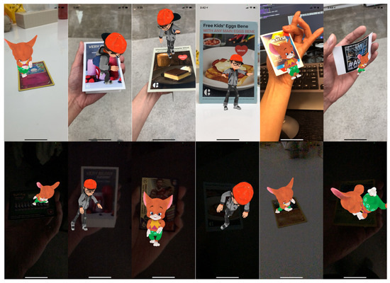After finding the matched rectangle in the natural scene, the AlteredImage class will keep a copy of the rectangle as the reference image and create a 3D plane of the rectangle with its exact dimension in the real world. The virtual object is retrieved based on the predicted identification and rendered in the scene using SCNNode class. Each virtual object node is grouped under one root node, meaning all nodes are defined relative to the transformation or orientation of the same root node. We also set the reference image tracking time interval to 0.03 s so that the system will start searching for the saved reference image every 30 milliseconds, and it will begin the actual YOLO prediction process if the reference image cannot be found via the AlteredImageDelegate protocol. Hence, this reduces the workload for the neural engine. ARKit 4 itself does not read any 3D formats, it instead uses the rendering engine to read and render the 3D object onto the scene. The rendering engine only accepts four 3D model formats: (1) Collada’s Digital Asset Exchange .dae; (2) Pixar’s Zipped Universal Scene Description .usdz; (3) Native Scene Format .scn; and (4) Reality Composer Format .rcproject or .reality. However, we can also use the Reality Composer built-in convert tool to convert other 3D object formats to one of the above-supported formats.