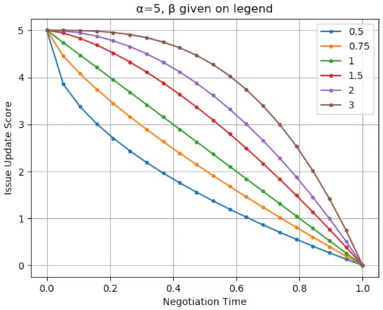 Figure 5 shows how the issue weight update parameter, , is calculated for varying values over negotiation time.