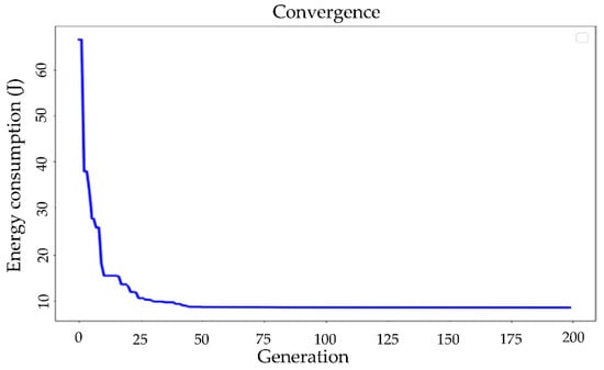 Table 10 shows the values of the energy consumption and the travel distance collected after the different generations (30th, 50th, 100th, 150th, 200th), when the optimization of the FLC using the genetic algorithm to track the zigzag path with the size of the initial population is 50. Table 10 shows that the minimum value of the energy consumption has been obtained at the 200th generation (E = 8.47 J), and the smallest value of the travel distance has been obtained at the 150th generation (s = 46.07 m). However, this study mainly aims to minimize the energy consumption. Thus, the best results (in terms of fitness function value) which have been obtained are (E = 8.47 J) and (s = 46.10 m) at the 200th generation.