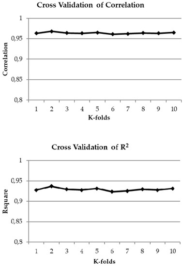 The accuracy is defined in percentage as the mean of the number of the differences between the predicted and the observed values of the dependent variable, that fall within a given range e (i.e., within an acceptable error) [28,41]. It can be calculated as follows: