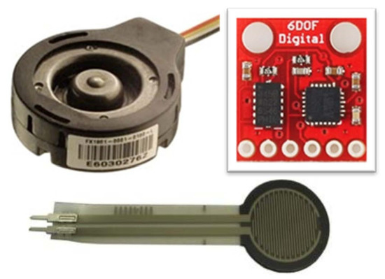 Force sensors, IMU sensor, and Interlink FSR sensor.
