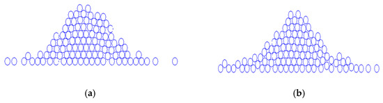 All these forces and the simulation results depend heavily on the contact model. Our model uses the nonlinear Hertz–Mindlin contact force model for dry particle simulation and the Hertz–Mindlin–JKR with a capillary force for the wet particle simulation [17]. The contact model has a viscous part in both normal and tangential directions. The normal force is determined according to the Hertz contact theory [24], Mindlin–Dereciewicz theory [25] is used to calculate the tangential force, and a dashpot is adopted to describe the dissipative mechanism. The Coulomb friction law limits the tangential frictional force. Because of its accuracy and efficiency, it is used by many researchers [3,17,26] to study the granular materials system. The normal force is divided into two parts: the repulsive force and the damping force. The repulsive force depends on the normal overlap. The damping force varies linearly with the relative velocity. Equation (3) gives the normal force acting on particle in contact with particle :