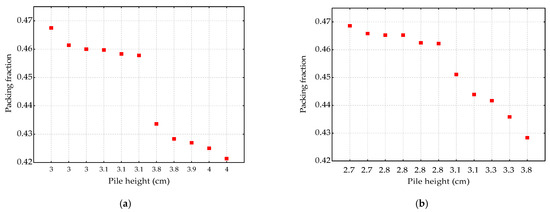 An analysis of the variation of the pile height against the initial packing height of the particles shows that the latter is the fundamental parameter that determines the final size of the pile, as shown in Figure 11.