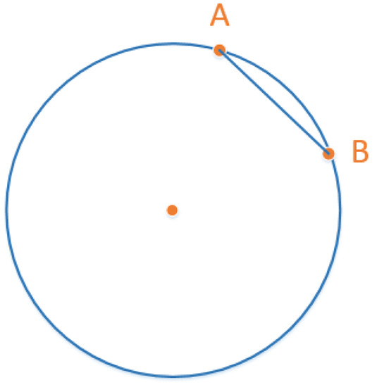 Let us introduce the definition of the arc-support line segment first. Assuming an arc on a circle, the end points are A and B, respectively. Therefore, the straight-line segment AB is the arc supporting line segment. The arc-support line segment is shown in Figure 3.