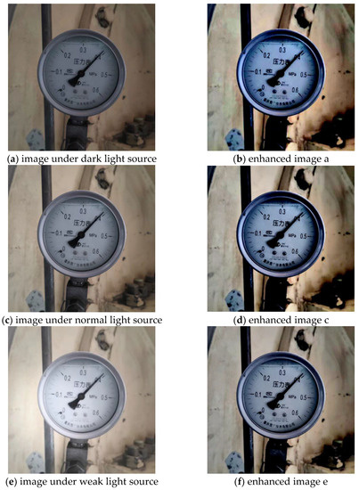 To verify the robustness of the MSRCR algorithm, this paper used a set of images with different light sources. Figure 8 compares the experimental results of the MSRCR algorithm. In Figure 8, the light source of the first two images is dark, the light source of the middle two images is normal and the light source of the last two images is weak.
