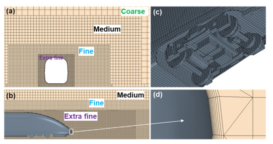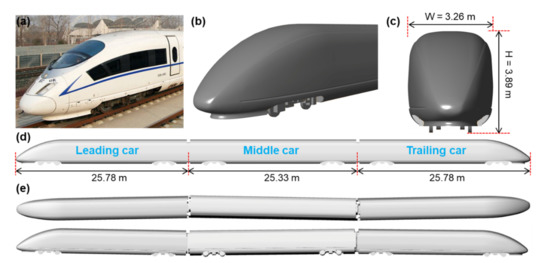 Figure 11c,d. Since different postures were applied to separated cars, there were quite local and slight differences due to geometric discontinuities at the car joints.
