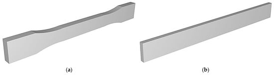 Shapes of composite insulation samples for the (a) tensile tests (dog-bone) and (b) flexural tests (prism).