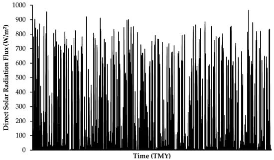 Direct solar radiation flux throughout the Typical Meteorological Year (TMY) at the location of the BIM.