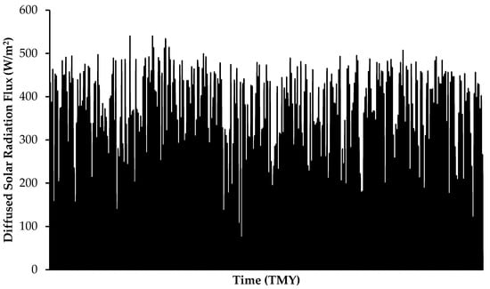 Diffused solar radiation flux throughout the TMY at the location of the BIM.