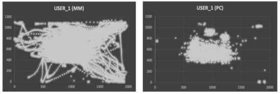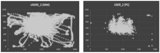 Moreover, Figure 4 and Figure 5 show user behavior in terms of mouse movement and point-and-click actions belonging to User 1 and User 2, respectively.