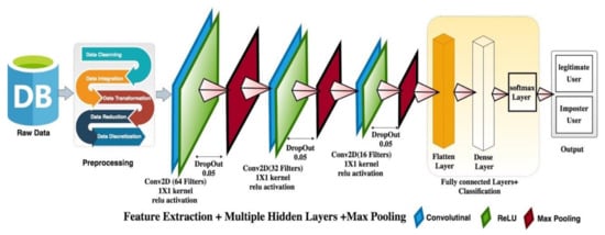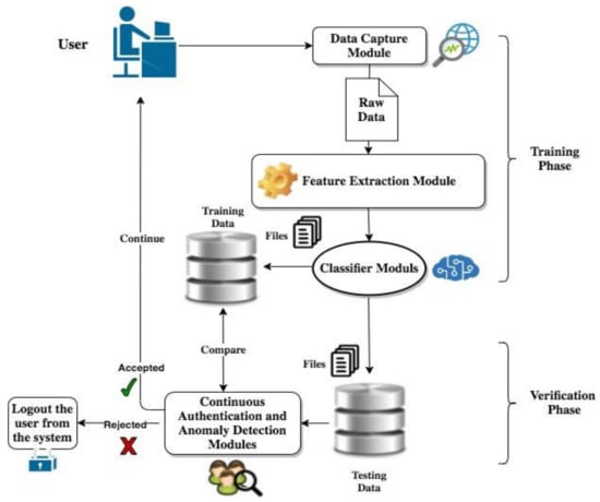 In the current age of internet technology, authentication is a major security issue because authentication failures often cause detrimental effects. Recognition of masquerading is a crucial factor in preventing identity theft. Username/password-based applications routinely used in social networks, e-mail, e-commerce, and accessing online banking are not sufficiently protective technologies due to the increasing number of hacking attacks [1]. Theft of passwords can result in massive damage to individuals and companies. Computer security is becoming increasingly important for both individual users and society with the increase in communication between the services and devices in use. On online security systems, continuous authentication systems (CAs), and anomaly detection systems (ADs) are necessary to handle the rise in unauthorized access. Biometrics make the authentication stronger and uniquely determine a user’s identity. The working principle of a biometric authentication system is to use a person’s physical and behavioral traits. The physical biometrics used to detect fraudulent identification are the iris, the face, the fingerprints, and the voice. Their use is an intrusive method that provides sufficient authentication [1,2]. Physical biometrics are often considered accurate for authentication, but their use faces potential privacy concerns [3]. Behavioral biometrics on the other hand is an alternative approach to physical biometrics that provides an additional protection system against fraudulent identification [4,5]. The principle of behavioral biometrics is based on behavioral traits such as a person’s handwriting patterns, gait, mouse dynamics, and keystrokes [6,7]. Behavioral biometrics is a quantifiable method that generates behavioral profiles of users.