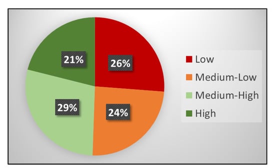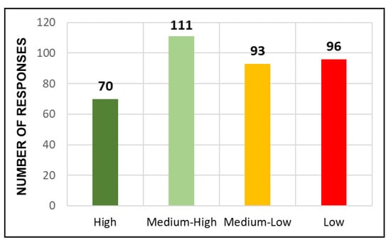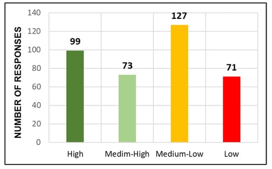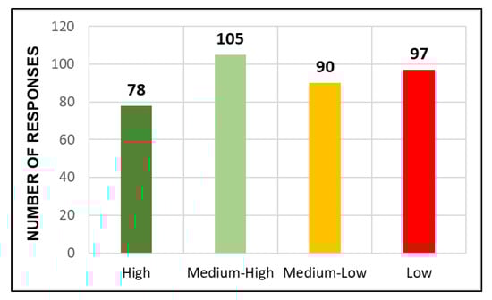 Pro-Environmental Behavior (PEB) is a behavior that intentionally seeks to mitigate the negative impact of occupants’ actions on the environment [29,32]. PEB may include such behaviors as composting organic waste, reducing waste production, recycling in households, reducing car use, and minimizing resources and energy consumption [31,44,45,46,47]. In this study, three main categories of PEB were used: (1) Environmental Perceived Knowledge; (2) Environmental Concern; (3) Physical Effort.