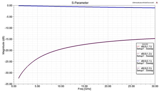 S-parameter simulation of the modulator electrodes.