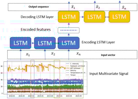 This technique has already been used to solve problems such as the prediction of vehicle trajectories based on deep learning [42]. This architecture [43] has shown great performance for tasks of translating from sequence to sequence. LSTM encoder–decoder models have also been proposed for learning tasks such as automatic translation [43,44]. There is the application of this model to solve many practical problems, such as the study of the equipment condition, applications in language translations, among others [45,46,47].