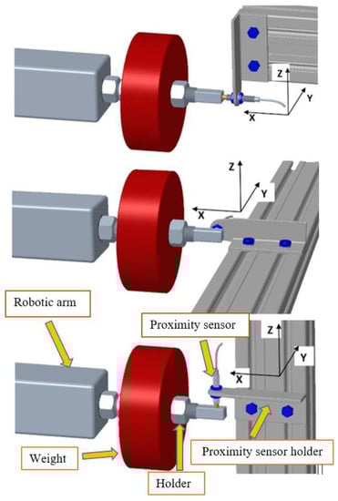 Non-contact measuring method (NcM) of robotic arm’s position deviation using a proximity sensor in the direction of the X, Y, Z axis.