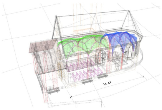 - Integrated application of GOG 9 and GOG 10 for the generation of complex and unique elements such as the complex vaulted system of the church, out-of-plumb walls, structural elements, roof and bell tower;
