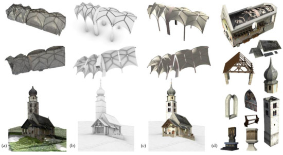 - Costantino, D.; Pepe, M.; Restuccia, A.G. Scan-to-HBIM for conservation and preservation of Cultural Heritage building: The case study of San Nicola in Montedoro church (Italy). Appl. Geomat. 2021, 1–15. [Google Scholar] [CrossRef]