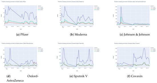 Only the works in [16,17] are somehow related to our work. However, the work of Villavicencio et al. [16] is related to tweets in the Philippines only, whereas we collect tweets around the globe. For this reason, we have around million tweets, but they analyzed only 993 tweets. This work also uses the Naïve Bayes model to predict the classification, whereas we classify the tweets with lexicon-based classifier and use the publicly available tools TextBlob and VADER. Villavicencio et al. [16] performed manual annotation for the training data, i.e., they manually provided the sentiment labels for the training data to predict the test data. We do not predict the sentiment labels, rather we calculate labels using the well accepted sentiment analysis tools. Thus, we cannot show any accuracy comparison with the work of Villavicencio et al. [16]. For the work given in [17], the Twitter data collection criterion and timeline are missing, which are necessary if we want to compare our result with theirs. Their dataset consists of 900 tweets only and is also not publicly available, so we could not compare our work with theirs. In our case, we do a thorough study on people’s sentiment about the COVID-19 vaccines and if they are maintaining a healthy way of life after getting vaccinated. We choose seven different vaccines and collect tweets when vaccines are more accessible to the general public. Our work is reproducible given our implementation details and publicly available code-base. We show how sentiment analysis can be useful for health and government officials to lead the vaccination campaign based on people’s reaction.