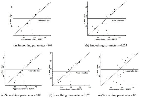 where is positive smoothing control parameter and the norm is smoothness penalty. From Equation (5), larger value of increases the amount of smoothness relative to the average deviation from the data squared. The value of SSP is estimated generally through iterative evaluation to minimize the maximum deviation while satisfying the accuracy of a given RBFNN meta-model in the approximate design optimization.