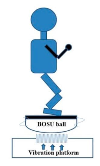Whole-body vibration (WBV) has become a routine training mode for athletes and fitness enthusiasts and has been an alternative or supplementary process for muscle and strength training. The sine wave displacement is generated through the frequency set by the vibration platform (VP). VP is mainly divided into two types: the vertical platform, which generates vertical vibration stimulation, and the alternating platform, which takes the horizontal and vertical axes of VP as the vibration center and generates left–right alternating vibration stimulation [12,13]. Previous studies on vibration stimulation reported that the g-value produced by VP acceleration stimulates the major end of the muscle spindle (Ia afferent), thus activating and recruiting more α-motor neurons. This state leads to muscle tetanic contraction, which is known as tonic vibration reflex (TVR) [14,15,16]. WBV can improve muscle strength, movement stability, agility, and overall fitness.