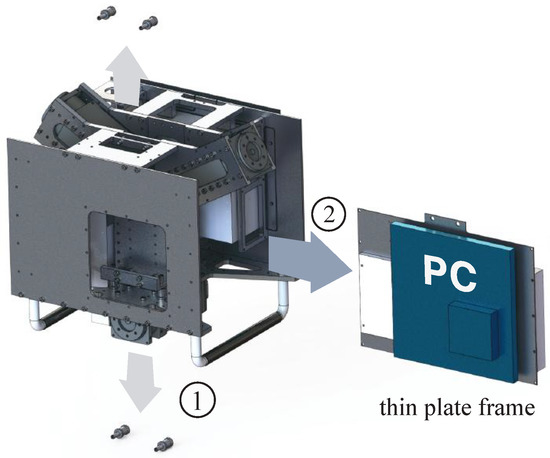 Exploded view of computer module. The modularized computer board can be sideways-disassembled by removing four bolts.