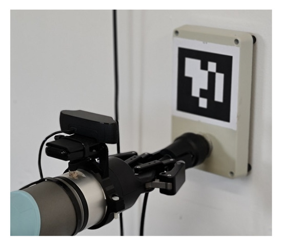 If we take the example of a plug sequence, initially, the coordinates of the fiducial marker (wall-plug or vehicle) are obtained. Then, a socket request to the computing unit of the arm is sent in order to obtain the gripper’s position in space. Having both the coordinates of the target and the gripper, the gripper’s position is adjusted so it is centered with the marker. The idea behind this is simply because there is no external information about the position of both the MP and the gripper in space, that is why there is a need for a first alignment with the fiducial marker; then, we proceed with the rest of the plug/unplug sequences.