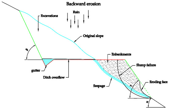 The proposed methods can also be applied in environment protection, and hydrotechnical engineering [18,19]. The evaluation of the slope is also necessary for river levees. Slope stability analyses are conducted with rising water levels until certain failure is reached. Discharge occurs at a water height of around 7 cm above the crown, which means the slope would actually fail before reaching the hydraulic heads used for slope stability calculation during the overflow [20].