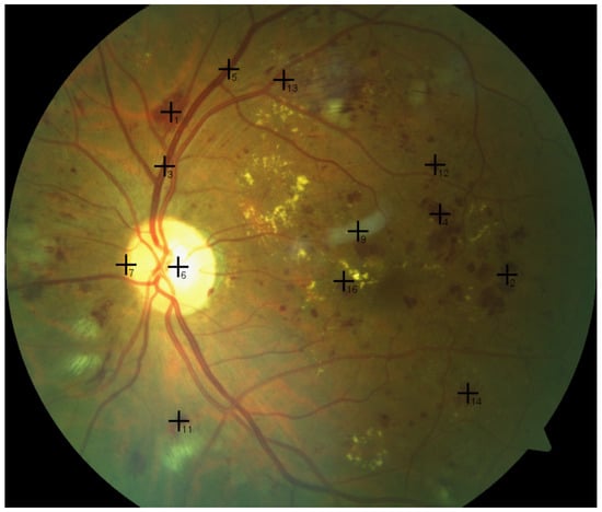 - Ganesan, K.; Martis, R.J.; Acharya, U.R.; Chua, C.K.; Min, L.C.; Ng, E.Y.K.; Laude, A. Computer-aided diabetic retinopathy detection using trace transforms on digital fundus images. Med. Biol. Eng. Comput. 2014, 52, 663–672. [Google Scholar] [CrossRef] [PubMed]