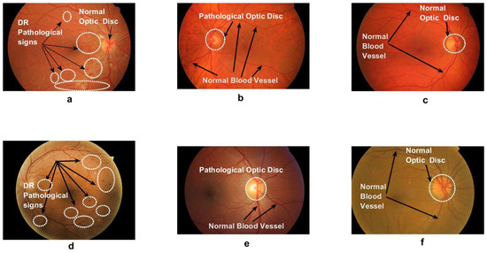 Luckily, images of the retina can help in diagnosing several retinal diseases, including DR and glaucoma [9]. This process is usually carried out and interpreted manually, which is laborious and prone to error due to minute image details, as shown in Figure 1. Consequently, if this process is automated, it would help ophthalmologists with a supportive tool that makes both diagnosis and decision making faster, easier, less expensive, and more accurate. To this end, computer vision and imaging techniques, such as those in the present work, can be leveraged.