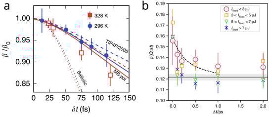 - Pathak, H.; Späh, A.; Esmaeildoost, N.; Sellberg, J.A.; Kim, K.H.; Perakis, F.; Amann-Winkel, K.; Ladd-Parada, M.; Koliyadu, J.; Lane, T.J.; et al. Enhancement and maximum in the isobaric specific-heat capacity measurements of deeply supercooled water using ultrafast calorimetry. Proc. Natl. Acad. Sci. USA 2021, 118, e2018379118. [Google Scholar] [CrossRef] [PubMed]