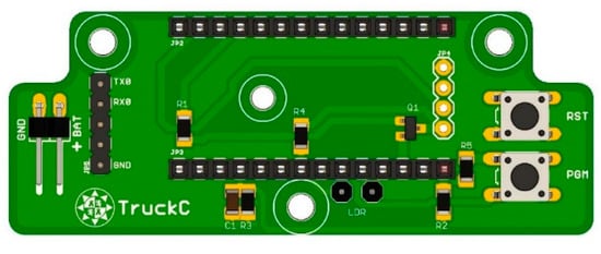 The size of the gateway node board is 82 × 40 mm. The 3D view of the PCB is shown in Figure 6.
