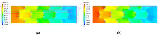 As shown in Figure 6a,b, an additional plane (denoted as “Plane+”) was used to capture the velocity, pressure and temperature contours inside the foams. The plane was inclined of 45° with respect to the horizontal axis in order to comprehensively investigate the hydraulic and thermal performances of the air crossing the periodic aluminum foams.