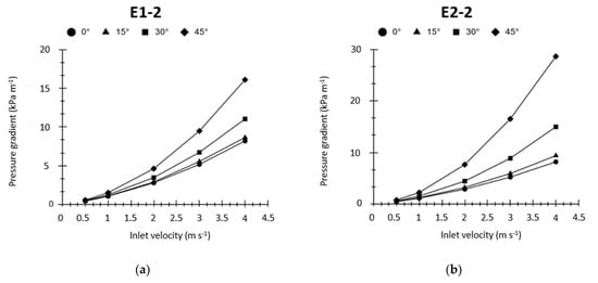 For the sake of brevity, only the values of pressure gradients for E1-2 and E2-2 were reported in Figure 13.