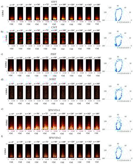 The FSST is the result of a post-processing method applied to the STFT transformation distribution. This method allows one to improve the concentration of the signal consisting of many components [6]. A Kaiser window of a size of 512 samples was used during the calculation of the STFT and the FSST as well. The applied frequency resolution was the same as in case of the STFT, but the resolution over time domain reached Δt = 0.4 µs.