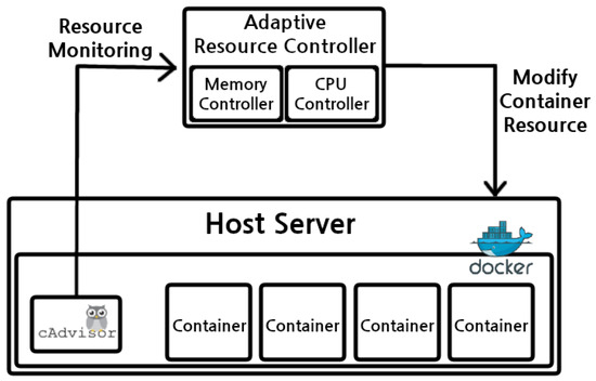 Figure 1 shows the overall system architecture of our proposed adaptive resource management scheme for container-based cloud infrastructure. First, the resource usage patterns (CPU/memory) of running containers are periodically monitored and delivered to the Adaptive Resource Controller. For this purpose, we leveraged the cAdvisor [28] developed by Google, which enables us to receive real-time resource usage data of Docker containers through REST APIs. cAdvisor basically provides container users with an understanding of resource usages and performance characteristics of their running containers. It is a daemon that collects, aggregates, processes, and exports information about running containers. cAdvisor is executed as a single Docker container and can obtain resource information of containers running on the host server through a simple command, and resource monitoring using a web UI is also provided through additional settings.