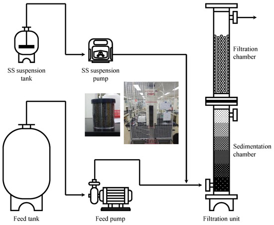 Therefore, in the present study, the SS removal of an upflow granular media filtration system is analyzed using several models to identify appropriate descriptions of stormwater runoff filtration systems. The SS removal is selected for investigation because it can provide an indication of the removal of other pollutants in runoff filtration devices [27,28]. Indeed, several previous studies have reported that the runoff SS is the most important carrier and sink for other pollutants, including organic matter [4,5,6], heavy metals [7,8], and phosphorus [9].