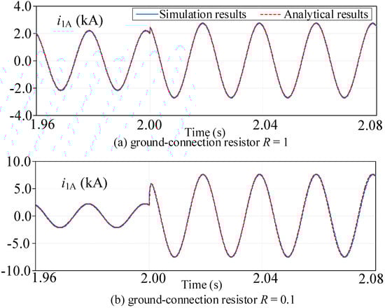Simulation results of the wind turbine’s output current with different ground-connection resistor when the short-circuit fault occurs.