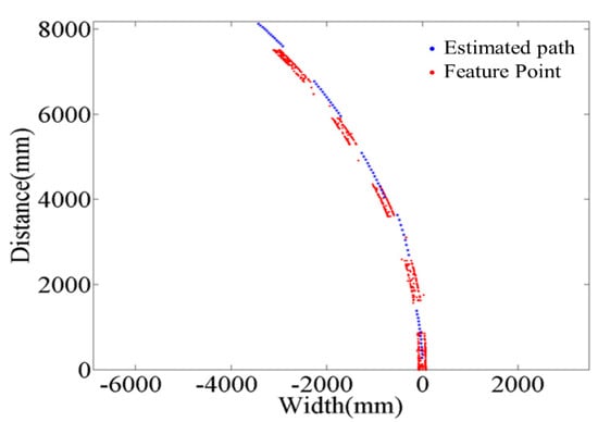 If the curvature algorithm is applied using the feature points extracted as shown in Figure 16, the path can be predicted as shown in Figure 17.