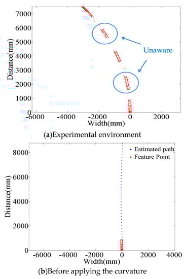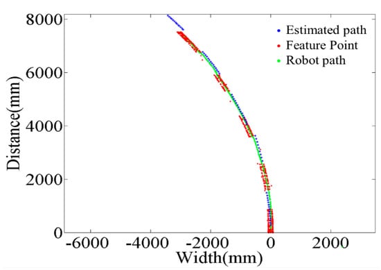 In Table 5, Given the land width of 150 mm, the average feature point coordinates did not deviate from those of the real lane width. Further, the maximum error was below 20 mm, not largely deviating from the real lane width. Nor did the robot deviate considerably from the lane during navigation because of the data error.
