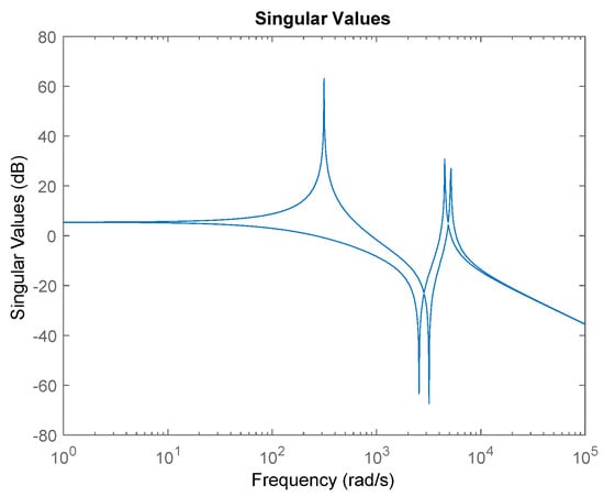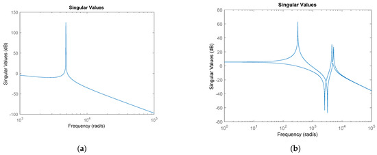 Considering the transfer function in (16), there is a tight coupling between two channels (channel 1: input 1 to output 1, channel 2: input 2 to output). Figure 4 shows the Gershgorin band graph of (16) with the parameter values of Table 2, which shows that the system is not column and row dominant. Also, based on the MIMO control system theory, the independent control design for channel 1 and channel 2 may lead to instability of the overall system, regardless of the resonance mode being dampened [29]. The high order of the system and the existence of the resonance mode are other factors that increase the difficulty of the current controller design.