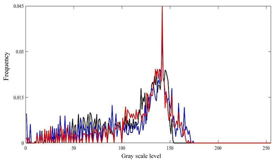 For each pixel, the gray scale is divided into 0 to 255, total 256, gray levels. Close to 0 level gray, indicating that the image is dark; close to 255 level gray, indicating that the image is bright. Therefore, for an experimental image I(M, N), its gray histogram can be expressed as [21]: