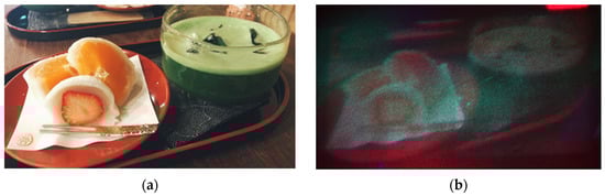 To confirm the effectiveness of the proposed method, Figure 12 shows the reconstructed image using another original image. As in Figure 11, we obtained a full-color reconstruction image with both reduced noise and color unevenness. Figure 13 shows a reconstructed video “Vegetables” using the proposed method in the Supplementary Section (Video S1) to confirm the effectiveness of the proposed method. All the calculations were performed by our wave optics library [22].