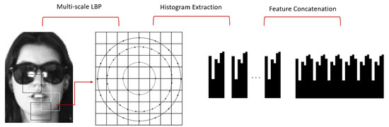 The process of extracting multi-LBP features from face images.