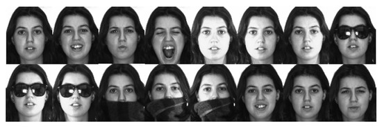 The first dataset used, the cropped AR face database [27], contains 2600 images generated from 100 individuals (26 different images per person) taken in two sessions under various distortions including facial expression, lighting, and occlusions. A resizing of the images into 165 × 160 pixels has been performed in this experiment. Some sample images of this dataset are shown in Figure 7.